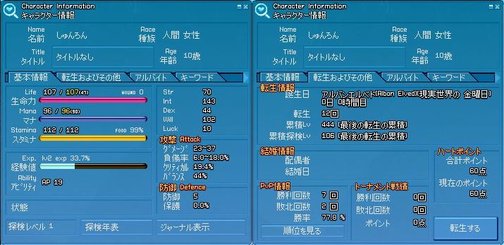 昨日の転生直後のキャラスペ晒しするよー('(゚∀゚∩